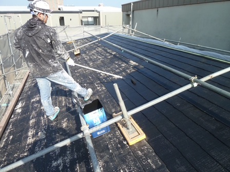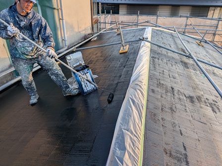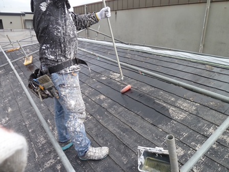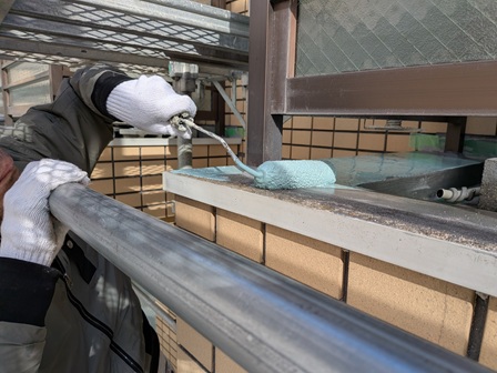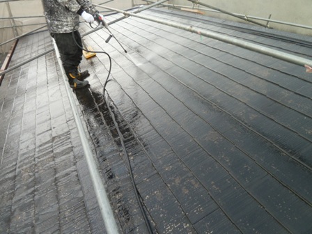 カラーベストの塗装では、高圧洗浄で汚れを除去したのち、シーラーを塗り、その後、仕上げ塗料を2回塗ります。シーラーには、下地と仕上げ塗料の密着性を高め、色ムラを防ぐ効果があります。