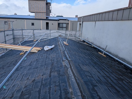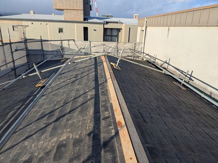 既存の棟押え・木下地を撤去後、木下地を新設し、ガルバリウム鋼板の棟押えを取り付けました。また、割れているカラーベストも取り替えました。